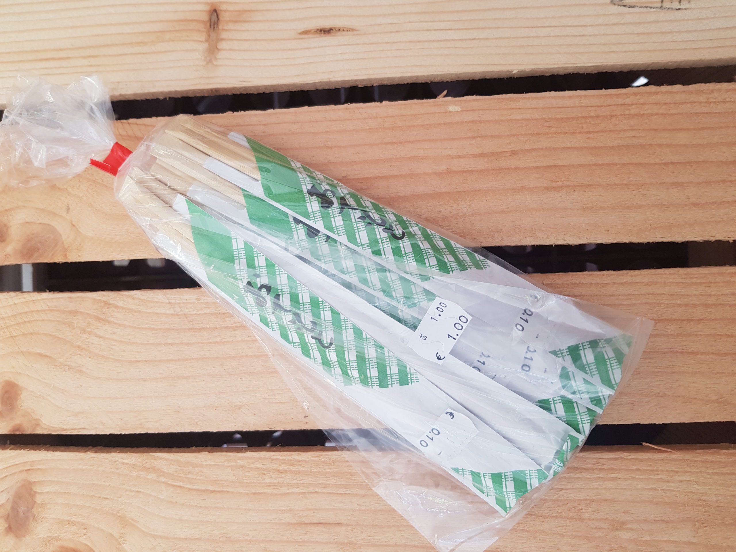 Eetstokjes hout, per 10 verpakt.