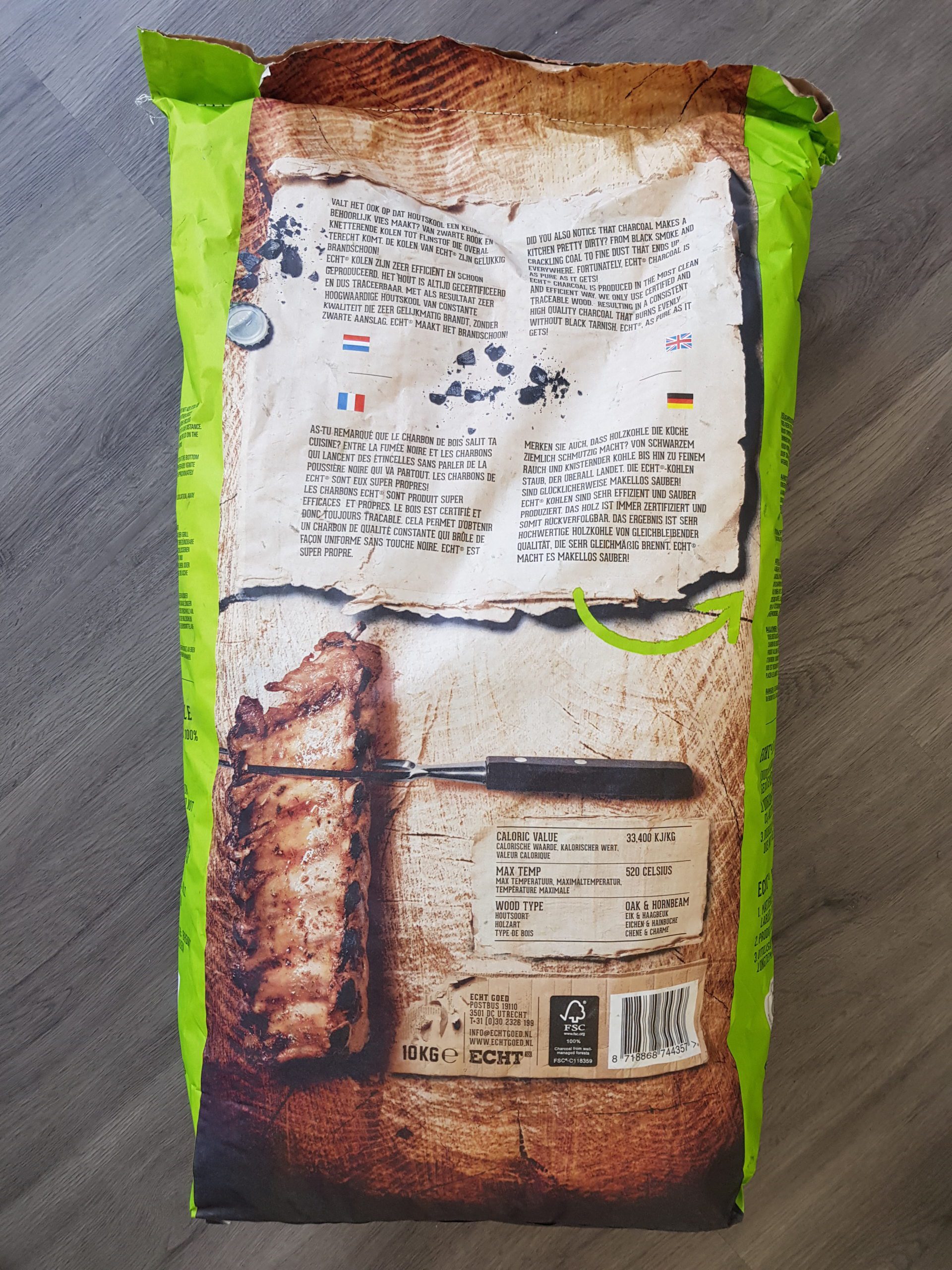 Hoogwaardige houtskool van constante kwaliteit, die zeer gelijkmatig brand, zonder zwarte aanslag.