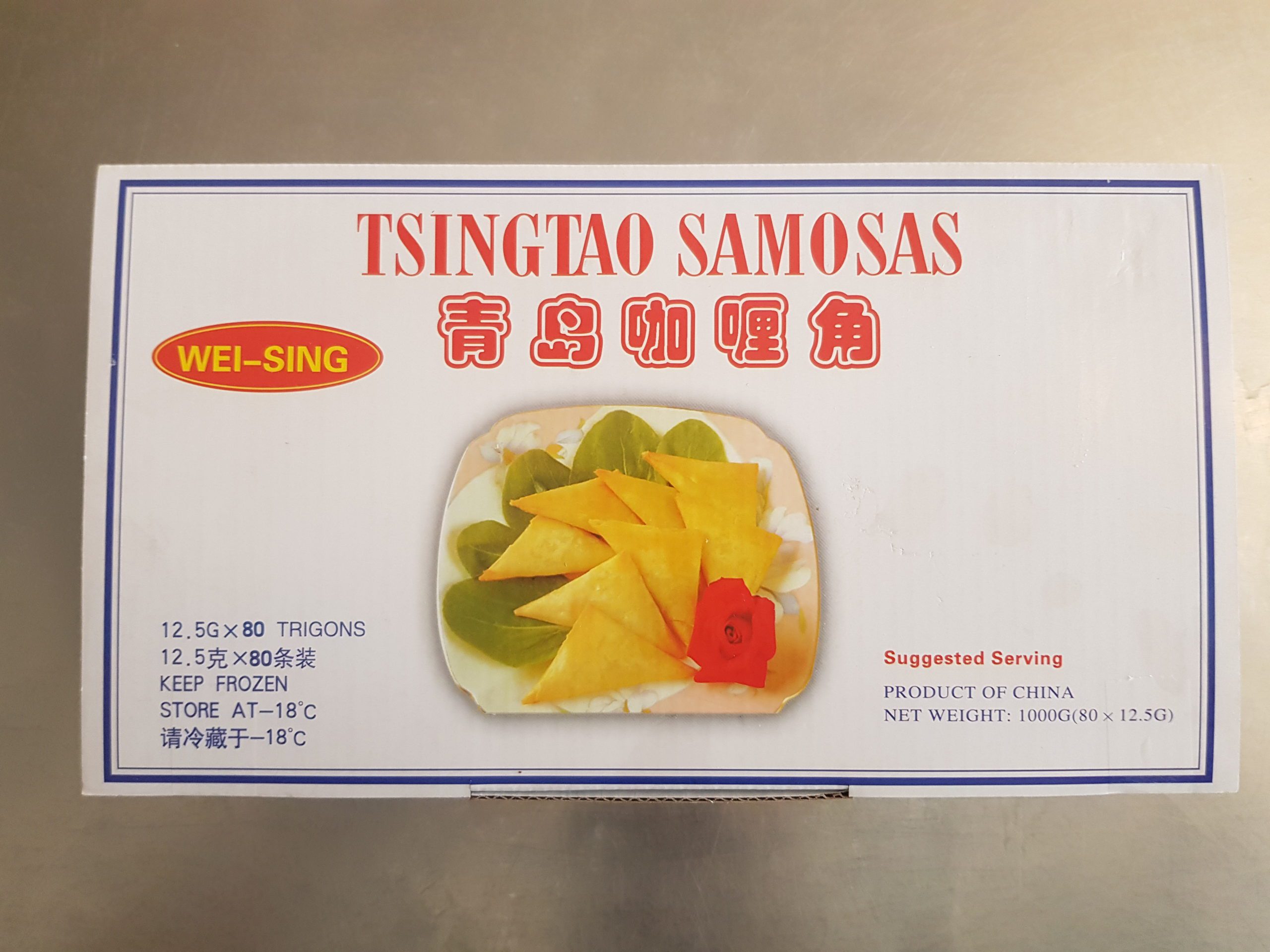 Vegetarische hand gevouwen  driehoeken gevuld met aardappel, ui, wortel, kool, champignons en originele Trigon Curry.