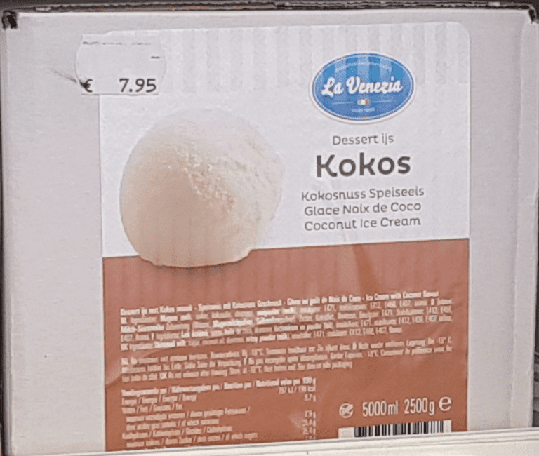 magere MELK, suiker, kokosolie, dextrose, weipoeder (MELK), emulgator: E471, stabilisatoren: E412, E466, E407, aroma