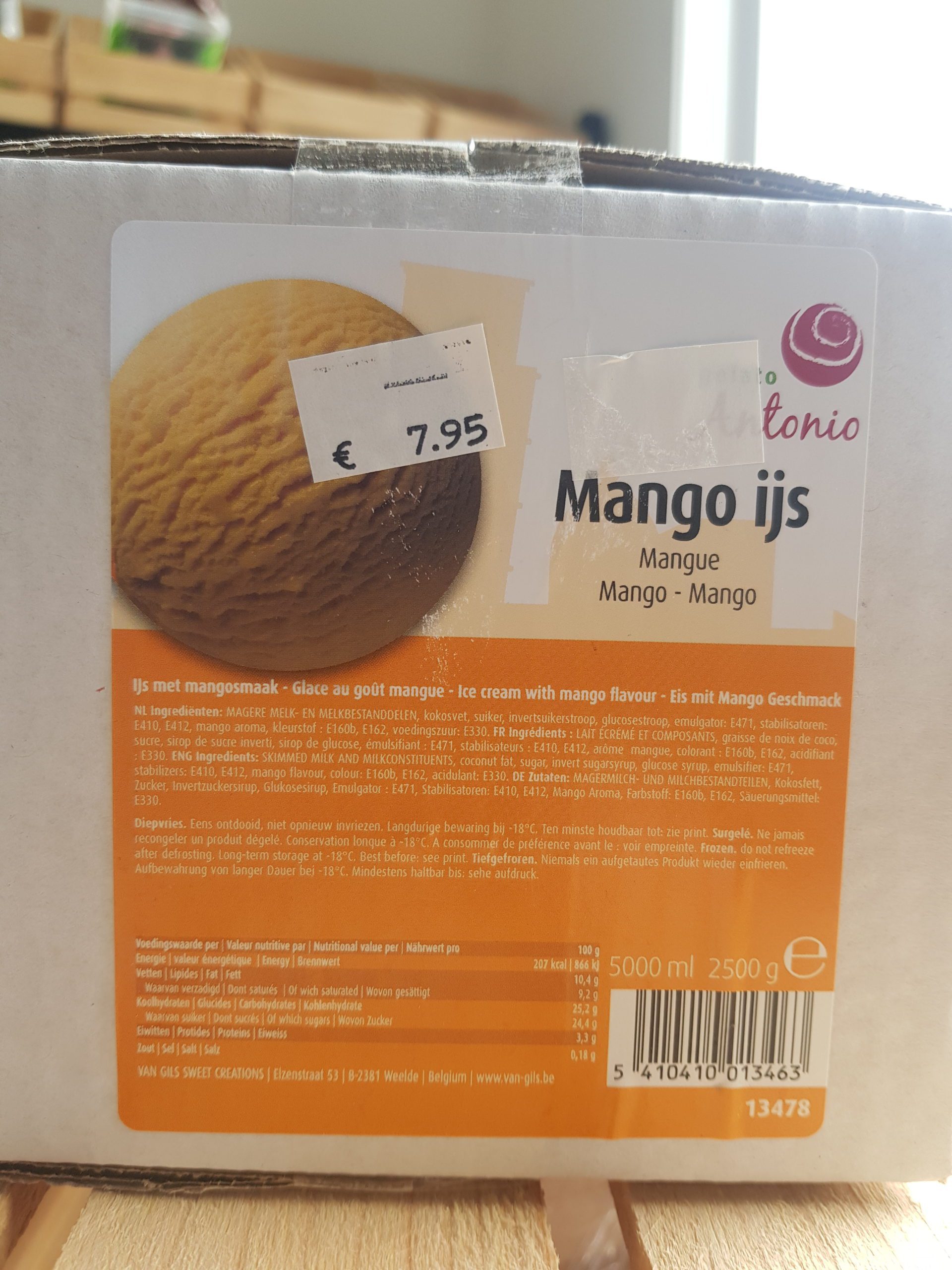 Mango schep ijs, 5 liter.