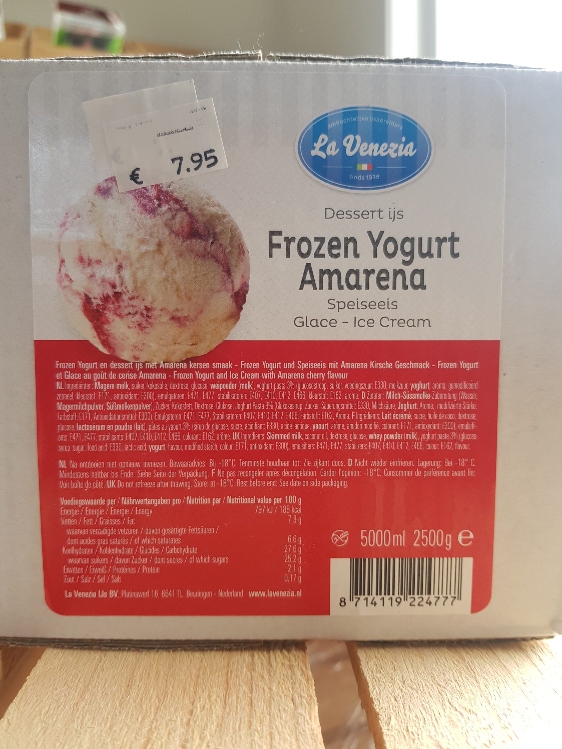 Yoghurt amarena dessert schep ijs,  5 liter.